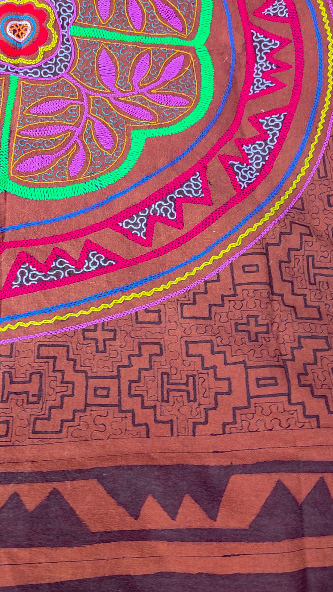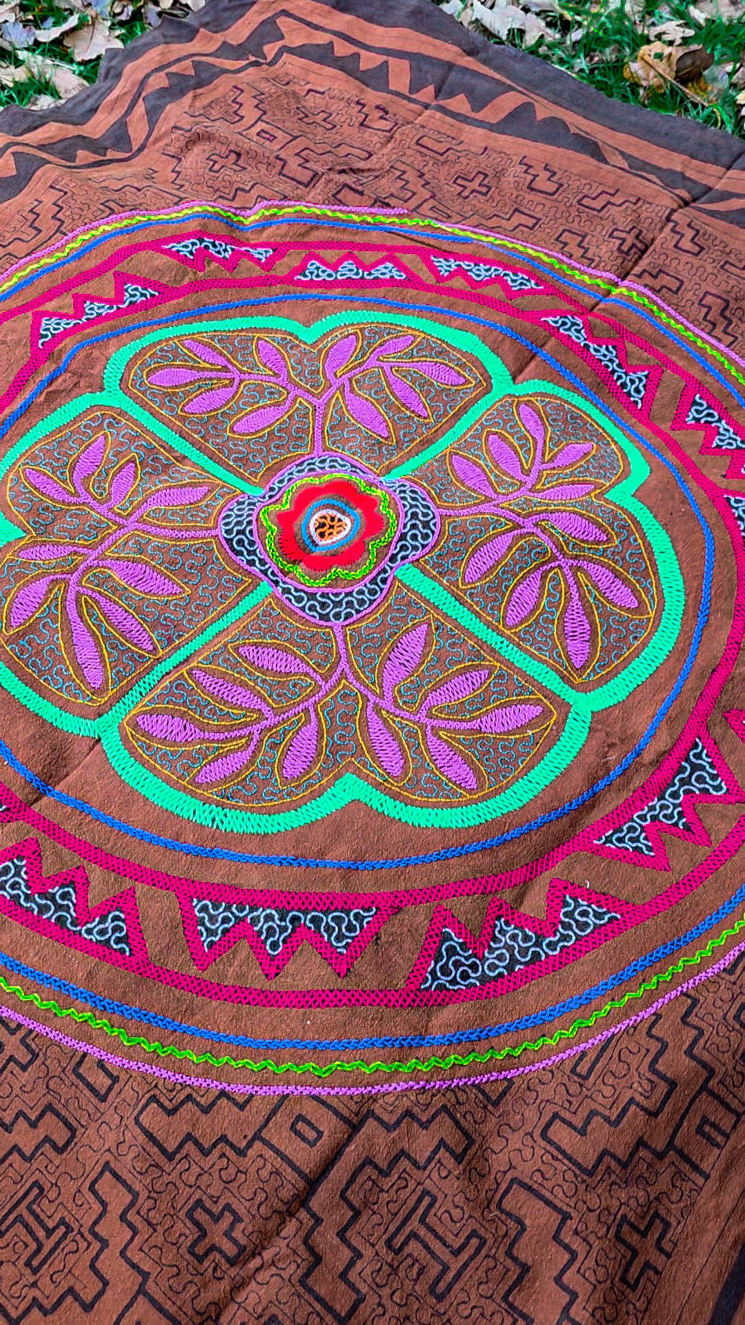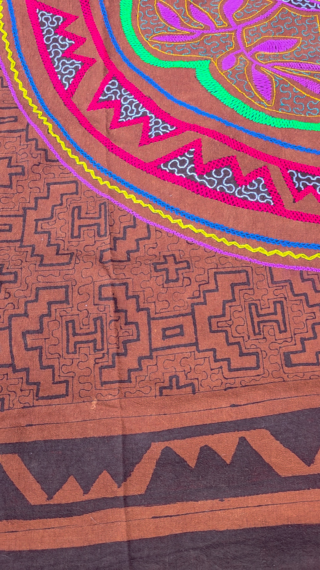 169 x 154 Giant Shipibo Ayahuasca Ceremony Altar Brown Embroidered and Painted Tapestry | REDUCED