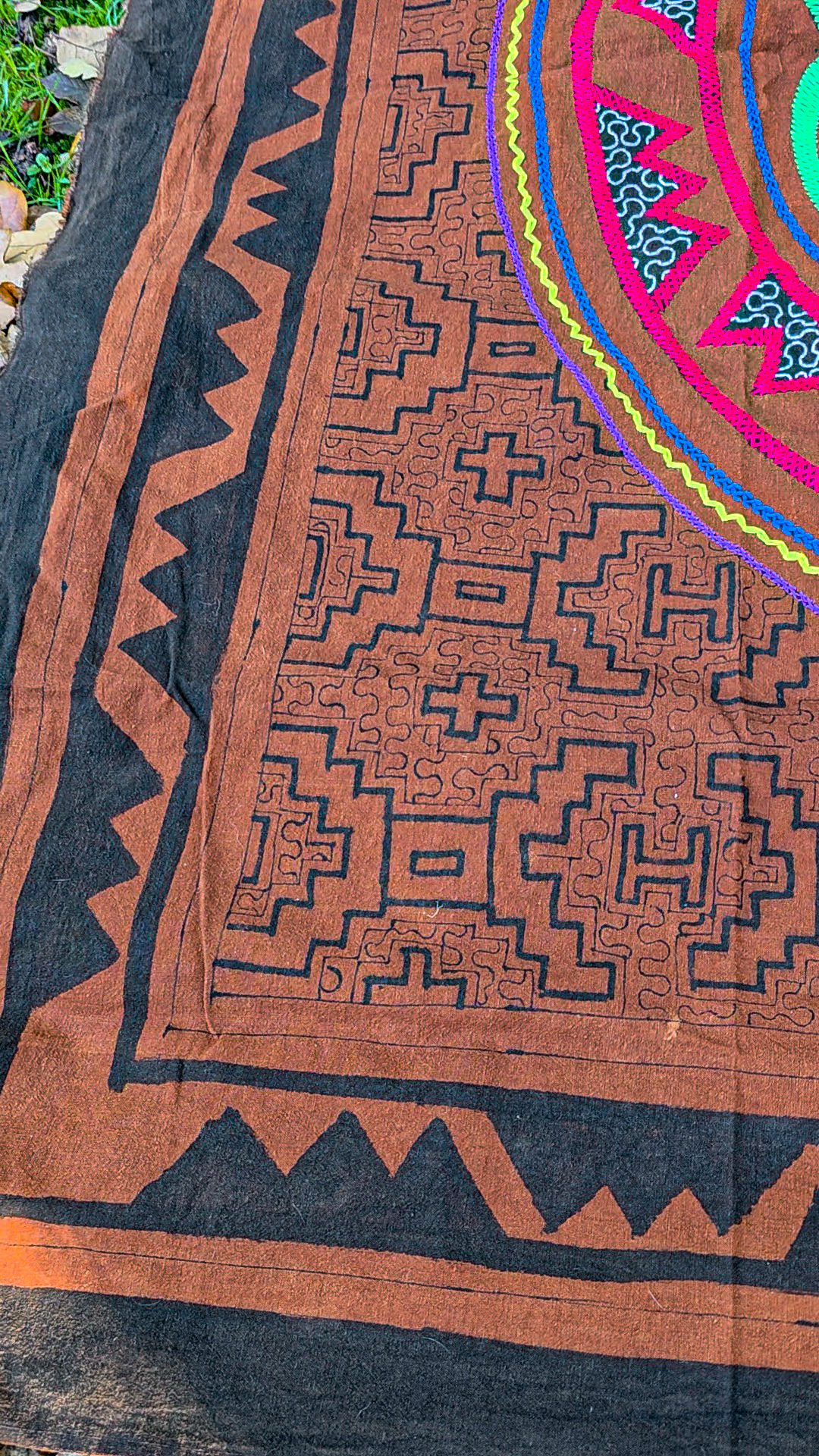 We have 1 large Shipibo tapestry for ceremony, or to hang on the wall available.