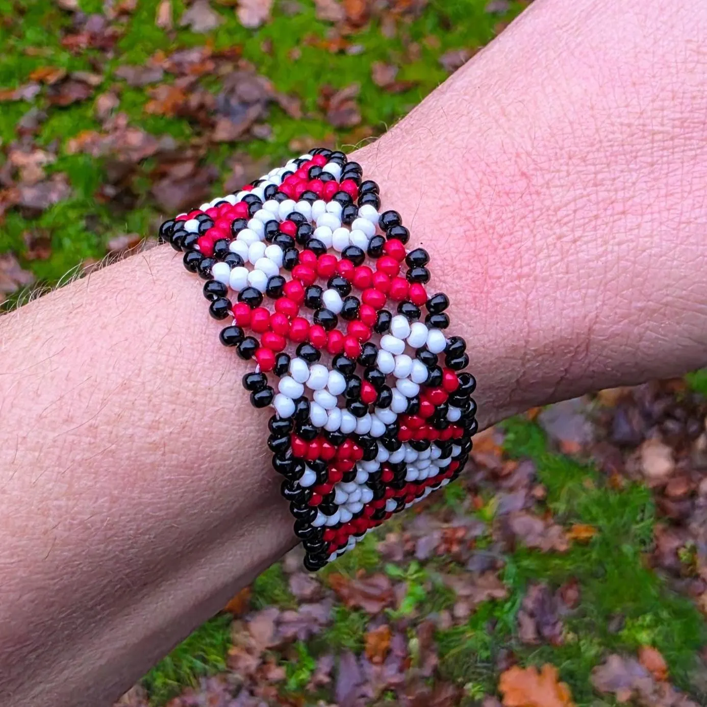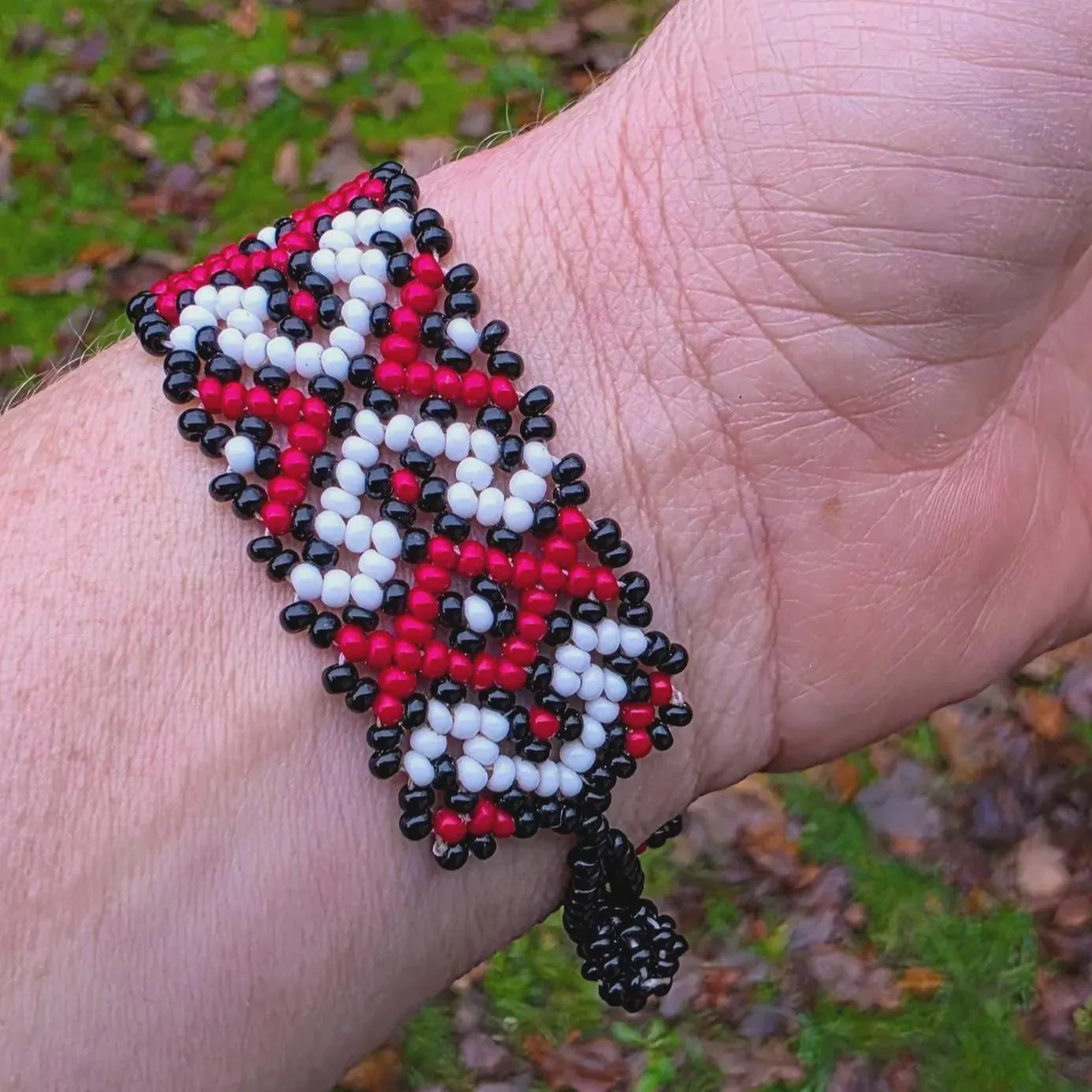 The bracelets are sacred art and offer protection to the wearer. The patterns on the necklace are much more than just patterns.