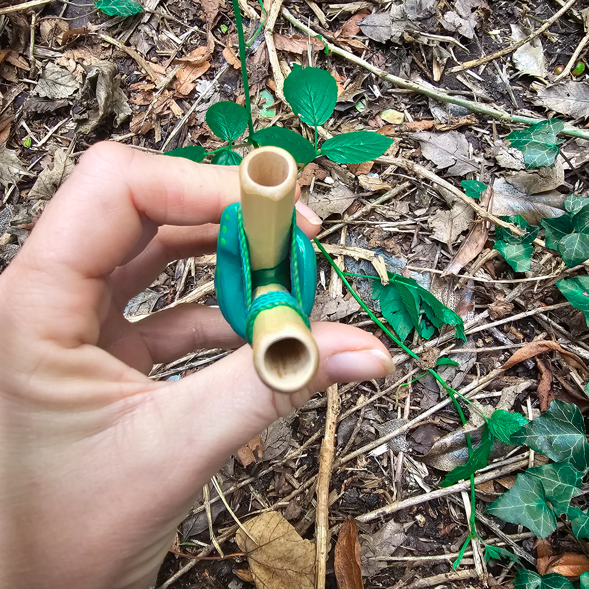 Home Hapé Kuripe and Tepi's Teal Green Dot Bamboo Serpent Kuripe