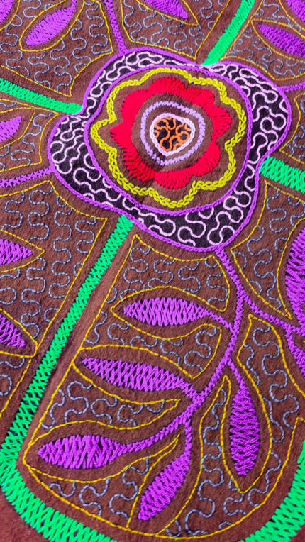 169 x 154 Giant Shipibo Ayahuasca Ceremony Altar Brown Embroidered and Painted Tapestry | REDUCED