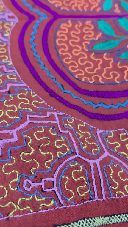 151 x 145 Giant Shipibo Ayahuasca Ceremony Altar Brown/Red Embroidered and Painted Tapestry